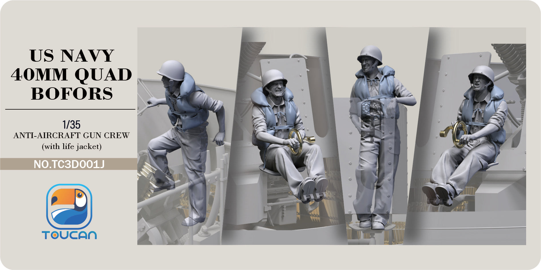 Toucan Models 1/35 WW2 U.S Navy Bofors Gun Crew With Life Jackets Figure Set 1