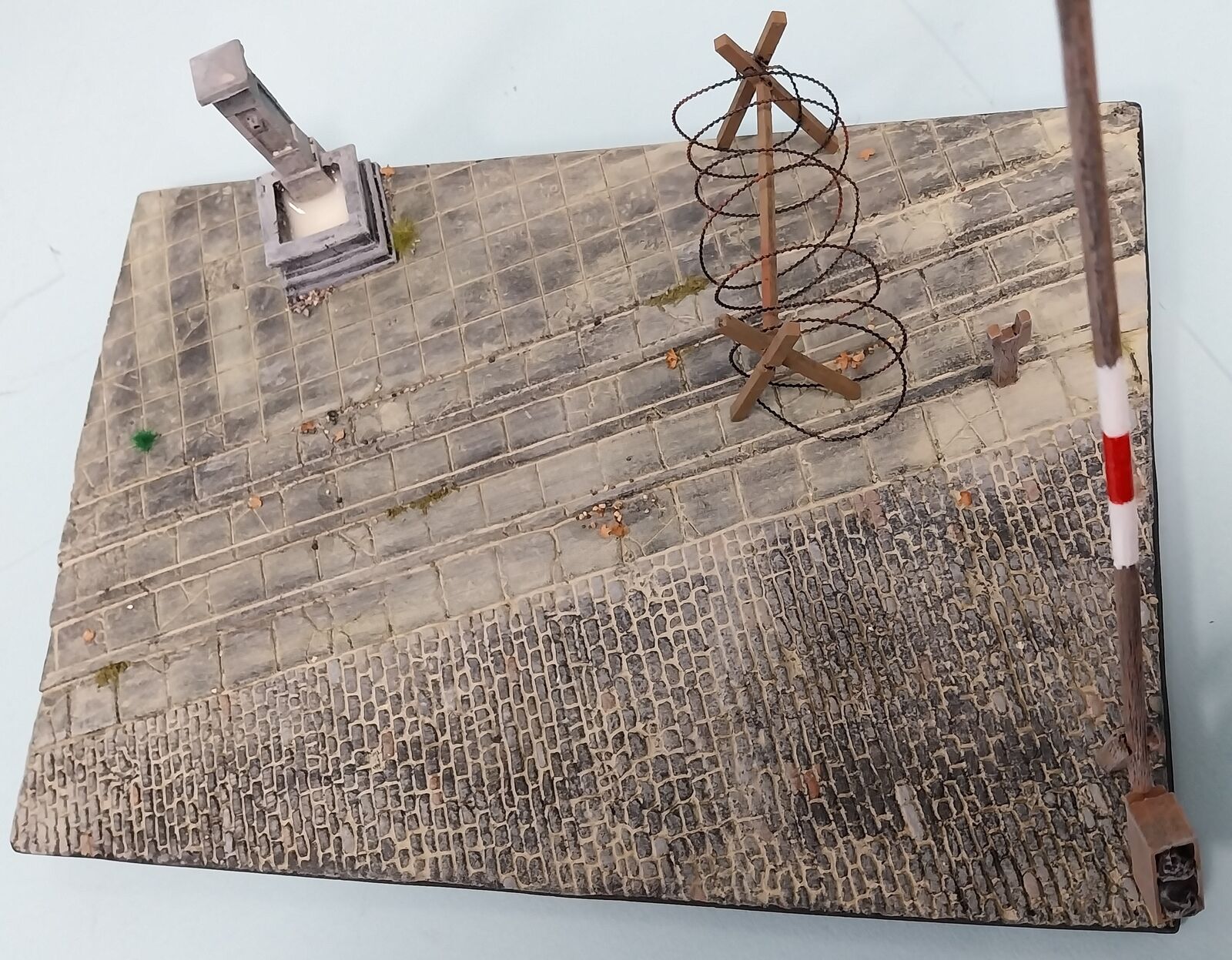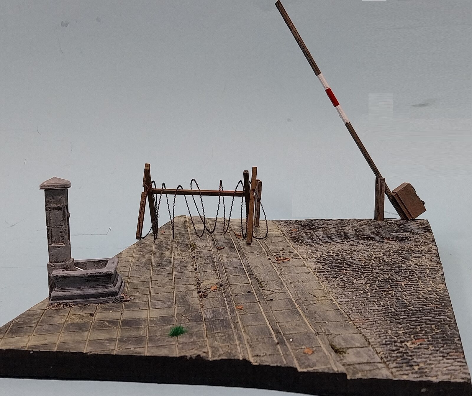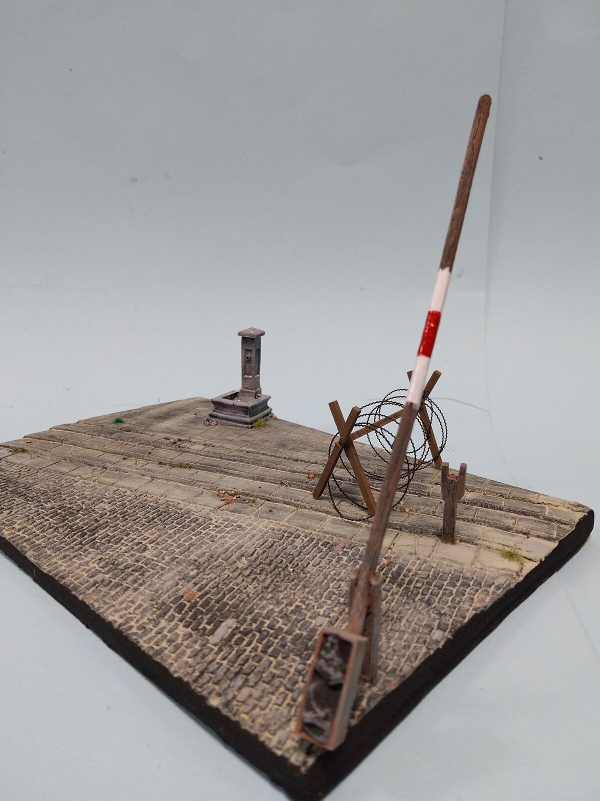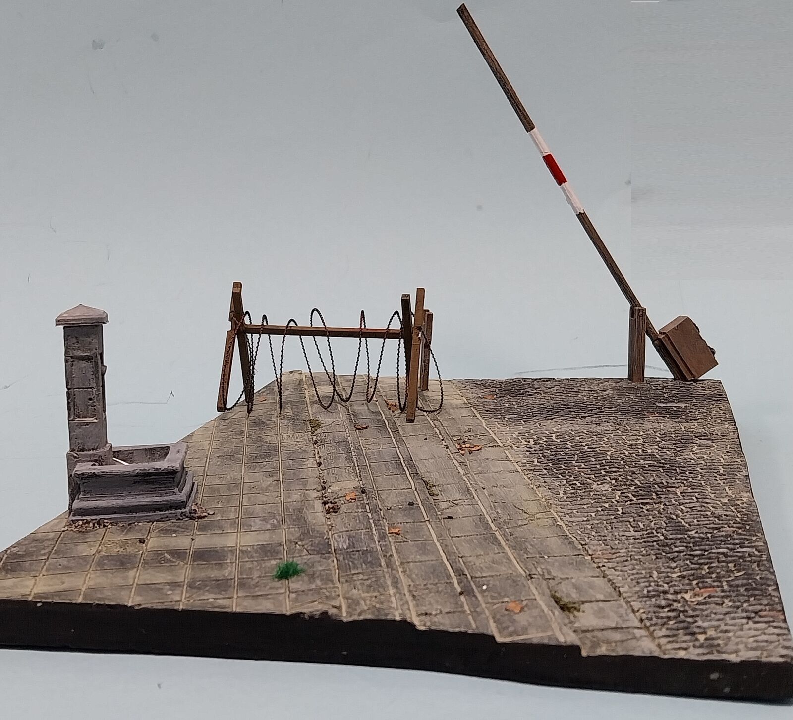 • Kit contains a highly detailed model display base, resin barrier and fountain plus wooden barbwire barricade.