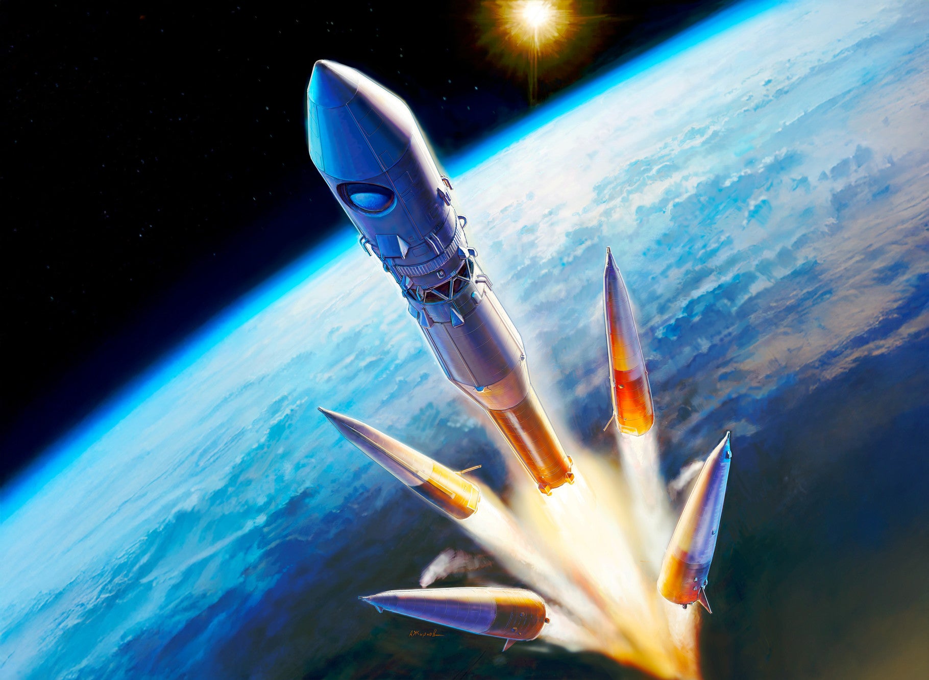 The "Vostok" rocket was created by Sergei Pavlovich Korolev in the 1950s. It was based on the military R-7 missile. The new rocket received a third stage, which made it possible to launch manned spacecraft, satellites and the first interplanetary station Luna into orbit. This rocket launched the "Vostok-1" manned spacecraft into Earth orbit on April 12, 1961, with Yuri Alekseyevich Gagarin on board. He became the first person to fly in space.