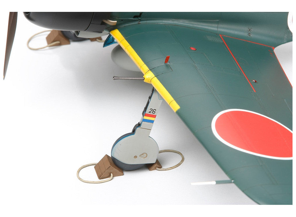 Differences from the A6M5 such as wing panels, spinner and wooden drop tank are highly detailed