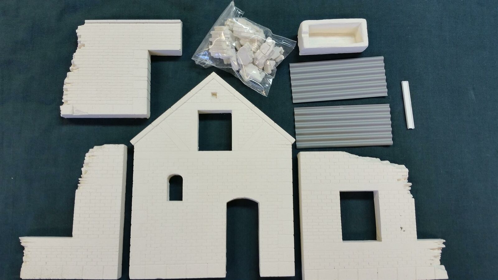 • Kit contains 4 highly detailed wall sections, trough, corrugate sheet and rubble pile.