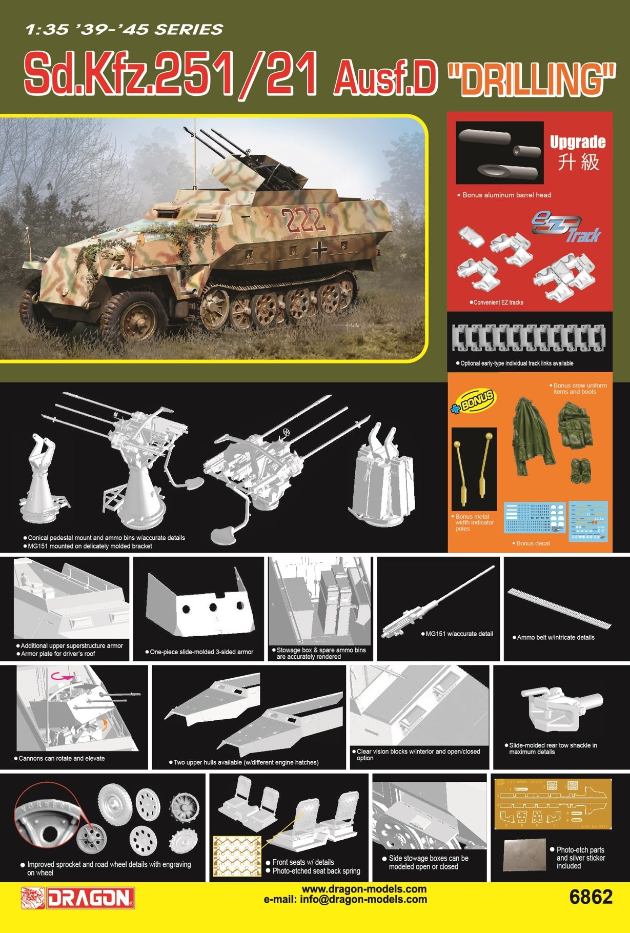 DRAGON 1/35 WW2 German Sd.Kfz.251/21 Ausf.D Drilling tank model kit