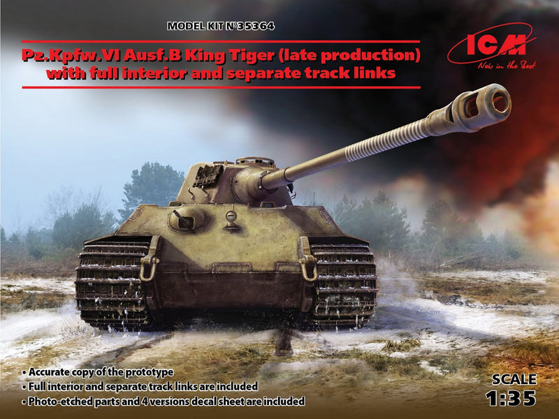 ICM 1/35 WW2 Pz.Kpfw.VI Ausf.B King Tiger (late production) with full interior, WWII German Heavy Tank