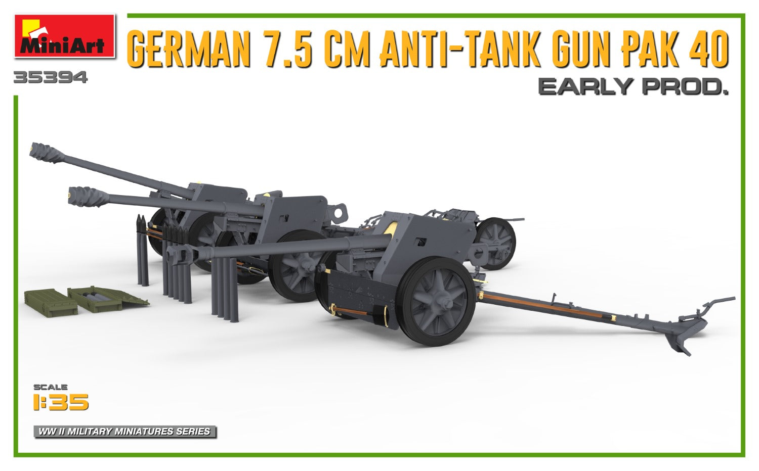Miniart 1/35 WW2 GERMAN 7.5CM ANTI-TANK GUN PAK 40 EARLY PRODUCTION