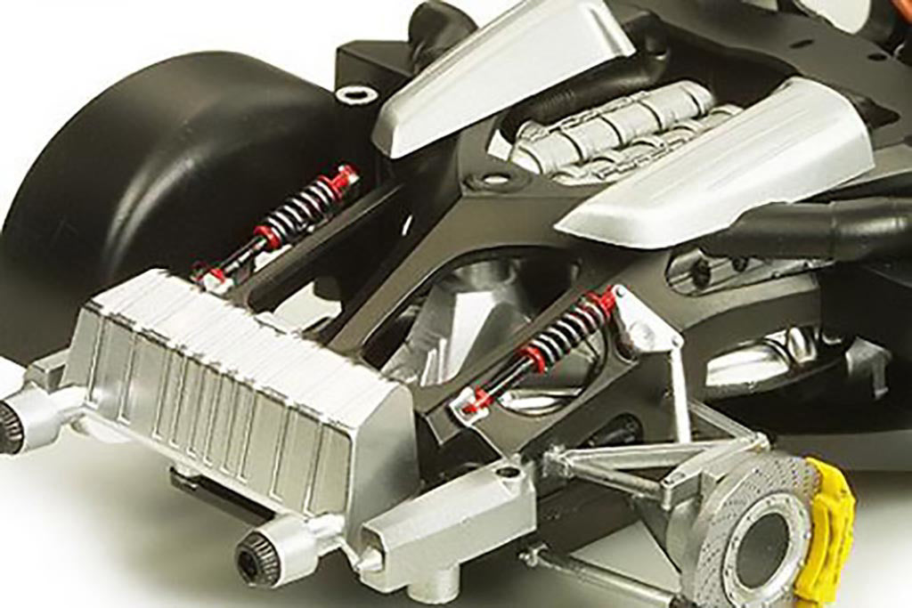 • Monocoque chassis and front and rear suspension accurately reproduced.