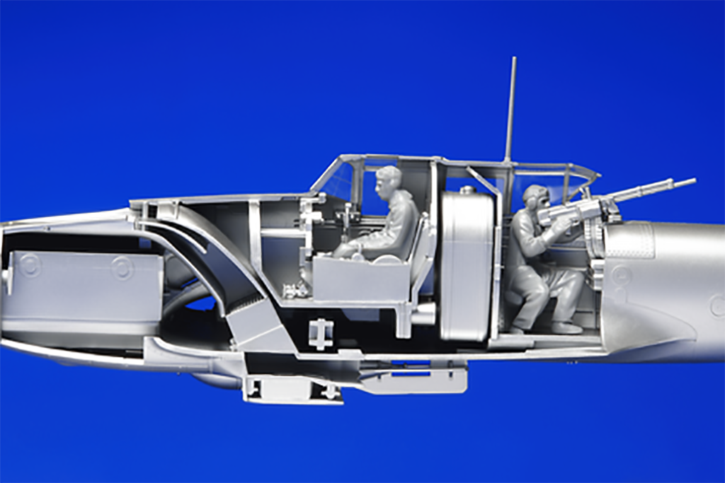 _Length: 243mm, Wingspan: 305mm. _Robust form of the aircraft, including the armament and heavy armor, is accurately reproduced. _Sharp nose section, swept outer wing, and wooden rear fuselage are also faithfully rendered. _Intake duct as well as radiator and oil cooler parts enable accurate reproduction of the radiator mechanism. _Highly detailed fuselage surface details. _2-seat cockpit and wheel well also feature rich finish. _Parts included to assemble open and closed canopies. _Includes 2 types of 23mm cannon fairings. _Parts for 100kg and 250kg bombs as well as 3 types of launch rails for RS-132 rockets are also included. _Comes with pilot and gunner figures as well as 3 marking options. _Canopy masks also included.